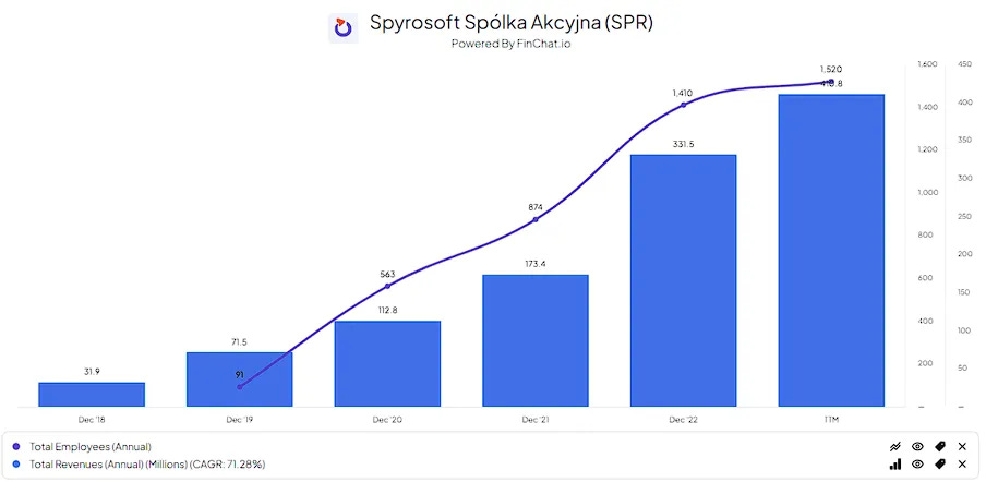 Počet zamestnancov – Spyrosoft vo svojom výhľade uvádza, že do konca roku 2026 chce mať až 3000 zamestnancov (dnes je to približne 1600) – pri zachovaní pomeru tržieb na zamestnanca by to znamenalo zdvojnásobenie tržieb do roku 2026.