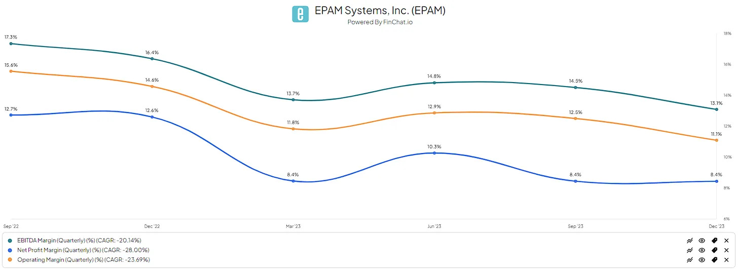 Pre porovnanie takisto prikladám vývoj marží aj u konkurenčnej spoločnosti EPAM.