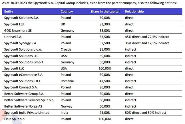 Dnes je podnikanie spoločnosti Spyrosoft rozdelené na nasledujúcu firemnú štruktúru s väčšinovými alebo 100% akciovými pozíciami vo všetkých nižšie uvedených dcérskych spoločnostiach. To je to, čo má Konrad Weiske na mysli, keď opisuje podnikanie ako “platformu“.
