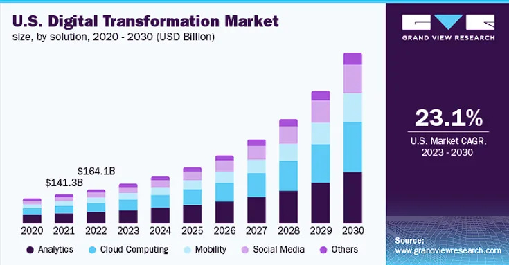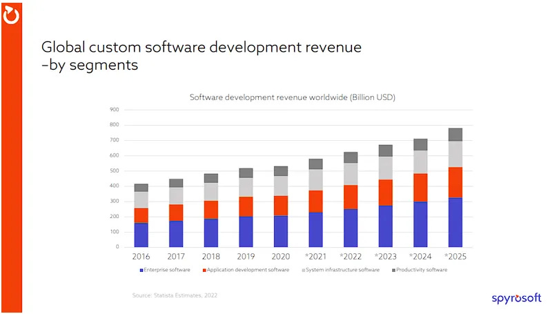 Aby sme trochu lepšie pochopili investičnú tézu, je potrebné pochopiť trh, na ktorom pôsobí. Jedná sa o jedno z najlepších odvetví pre investovanie, ako je digitálna transformácia a vývoj softvéru. Ak vezmeme do úvahy neustály technologický pokrok spoločnosti a hľadanie väčšej produktivity, tak Spyrosoft má zrejme svoje svetlé časy stále len pred sebou. Nižšie prikladám zopár grafov, ktoré poukazujú na silný trend digitalizácie.